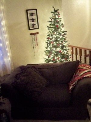 Several years ago, we purchased a cheap, pre-lit, artificial Christmas tree from Fleet Farm. It had been clearanced after the holiday, and we figured we could use it on those Christmases when we were travelling for much of the Christmas season and didn’t want a pricier real tree browning in our living room while we were gone.