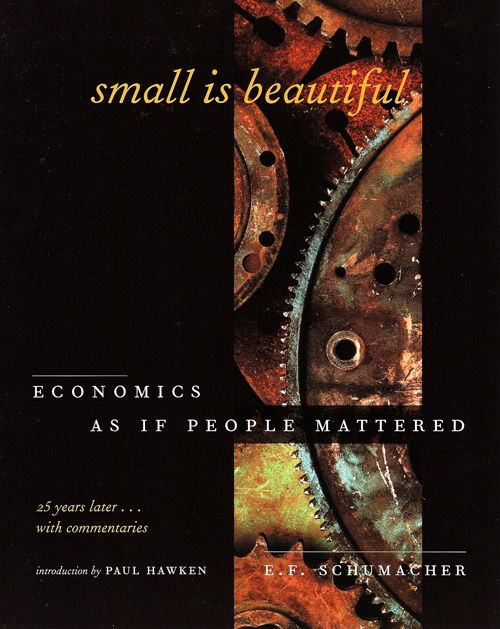 This teenage shortsightedness bothers me still today, since our news and politics revolve around the economy. E. F. Schumacher’s Small Is Beautiful: Economics As If People Mattered recognized this utter domination of economics over all, warned against it, and proposed specific antidotes. Written in 1973—a year before I was born—and recommended to me by a former boss, it strikes me as a book that was likely read, loved, and then neglected by many in the last 40 years as they were swept along by currents too strong to swim against.